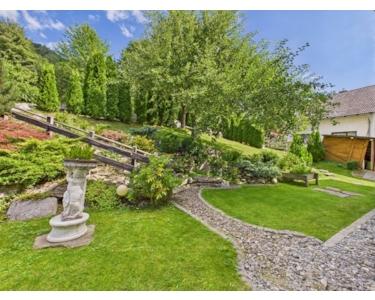 Der Zugang zur großzügigen Terrasse mit Blick in den rund 766 m² großen Garten erfolgt über den Kellerbereich, der zudem über einen separaten Eingang verfügt und sich hervorragend zur Nutzung als zweite Wohneinheit, Gästequartier oder Homeoffice-Bereich eignet. Die 2. Terrasse befindet sich hinter dem Haus und ist vom oberen Eingang oder der Küche erreichbar.