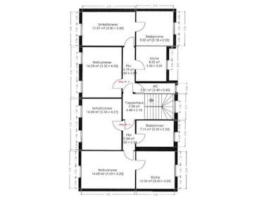 EG rechts: 5 Zi. Whg mit ca. 116 m² mit Küche, zwei Bädern und einer Dachterrasse