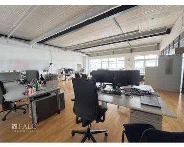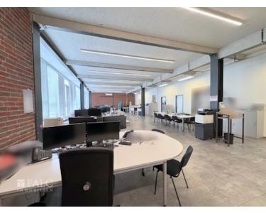 Die hier angebotene Gewerbe-Bürofläche überzeugt durch ihren modernen, industriellen Look, der eine offene und repräsentative Arbeitsatmosphäre schafft.