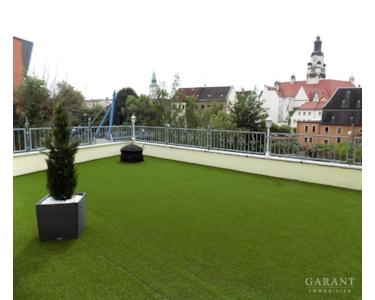 Eine großzügige Dachterrasse mit Blick zur Innenstadt und zum Uhrenturm des Rathauses runden das Angebot ab.