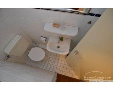 Über eine Wendeltreppe gelangt man ins Untergeschoss. Hier befinden sich das zweite Schlafzimmer und das Bad mit Badewanne. Die Wohnung ist ideal für 2 Kollegen.