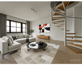- Großzügiger Raum, der über eine elegante Wendeltreppe direkt vom Wohnzimmer aus zugänglich ist.
