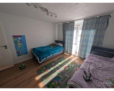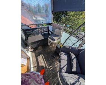 Im DG befindet sich eine etwa 78 qm große Wohnung mit Wohnzimmer, Schlafzimmer, Essbereich mit Küche, zwei Kinderzimmern, Badezimmer, Gäste-WC und Flur. Zwei Balkone mit schönem Ausblick sowie ein zusätzliches Kinderzimmer im Dachspitz runden das Angebot ab. Diese Wohnung ist aktuell monatlich für 1.200 Euro zzgl. NK sehr gut und langfristig vermietet.