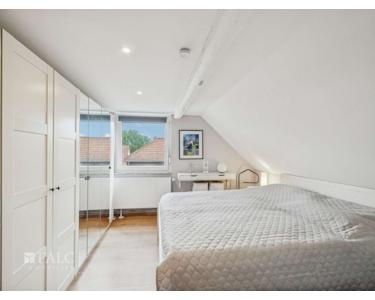 Die Wohnung, ca. 100m² Wohnfläche, hat auf ihrer ersten Ebene schon alles was Sie brauchen. Alle Räume gehen direkt vom Flur ab. Angefangen mit dem Schlafzimmer und dem Kinder/-Arbeitszimmer, welche trotz ihrer Dachschrägen sehr geräumig sind.