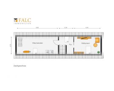 Über die Wendeltreppe, die nicht nur platzsparend, sondern auch jederzeit veränderbar ist, geht es nach oben in das Dachgeschoss. Dort finden wir auf der linken Seite einen Raum, der als Wäschezimmer genutzt werden kann – dem gegenüber finden Sie einen Hobbyraum. Ob als gemütlichen Rückzugsort oder als Fitnessraum - lassen Sie Ihren Ideen freien Lauf! Zusätzlich zur Wohnfläche.