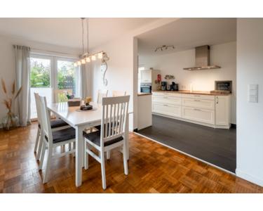 Das innen wie außen umfassend kernsanierte Einfamilienhaus steht auf einem insgesamt 614 m² großen Grundstück. Die insgesamt rund 157 m² Wohnfläche (ohne Terrasse und Dachterrasse) verteilen sich auf die EG-Wohnung mit rund 97 m² und die OG-Wohnung mit rund 60 m² Wohnfläche. Die EG-Wohnung verfügt über 3 Schlafzimmer, eine Küche mit Zugang zur Terrasse/zum Garten, einen großen Wohn-Essbereich, ein Bad mit Wanne und Dusche sowie ein separates Gäste-WC. Die OG-Wohnung hat 2 Schlafzimmer, ein Bad mit Wanne und Dusche, einen Abstellraum sowie einen großen Wohn-Essbereich mit integrierter Küche und Zugang zur großen Außenterrasse. Der so gut wie nicht einsehbare Garten bietet verschiedene idyllische Sitzplätze zum Sonnen und Entspannen. Carport und Stellplätze für insgesamt 3 Fahrzeuge sind auf dem Grundstück vorhanden. Interessenten können auf Wunsch eine detaillierte Liste aller professionell ausgeführten Sanierungsmaßnahmen erhalten. Bitte sprechen Sie uns dazu an.