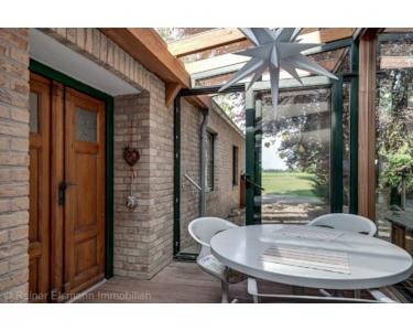 2 Schlafzimmer, Flur mit Zugang zum OG, Badezimmer mit Dusche, Wohnzimmer mit Kamin, Zugang zum Wintergarten und Café
