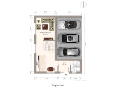 Straßenbegleitend ist ein kleines Einfamilienhaus mit integrierten PKW-Stellplätzen und einer Wohnfläche von ca. 105 m² für eine dauerhafte Wohnnutzung vorgesehen.