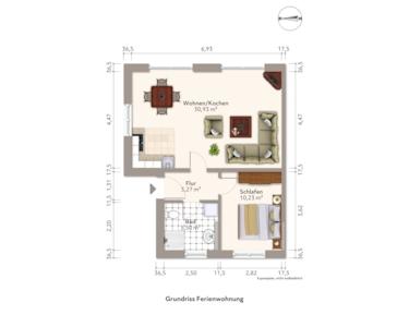 Die knapp 49,93 m² Fläche verteilen sich auf 2 Räume und sind ein idealer Rückzugsort für Paare, die ebenerdiges Wohnen bevorzugen.