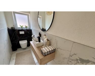 Das Haus wurde im Innenbereich technisch und optisch auf den neuesten Stand gebracht. Im Zuge der umfassenden Sanierung wurden unter anderem die Heizung auf Luftwärmepumpe mit Fußbodenheizung umgebaut, alle Wasser- und Elektroleitungen wurden erneuert, wie auch alle Fenster. Auch der Innenbereich wurde hochwertig modernisiert.