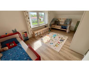Im Dachgeschoss befinden sich drei Schlafzimmer, ein Bad mit Dusche, ein WC sowie auch ein Abstellraum.