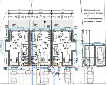 Die genehmigte Planung sieht drei gut aufgeteilte Einfamilienhäuser mit ausgebautem Dachgeschoß in Reihenhausbauweise vor. Die Wohnfläche beträgt jeweils ca. 145 m².