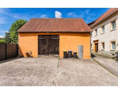 Auf dem Grundstück befinden sich neben dem Mehrfamilienhaus mit vier Wohnungen eine Scheune, eine Garage, drei Stellplätze und einen Brunnen. In der linken Haushälfte befinden sich im EG eine 1 RWE, der Heizungsraum, zwei Abstellräume und der Flur. Im 1. OG finden Sie eine 3RWE und im Dachboden steht eine Ausbaureserve von ca. 230 m² zur Verfügung.