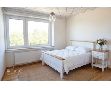 Das Apartment verfügt über vier Zimmer, die flexibel genutzt werden können. Zwei der Zimmer eignen sich hervorragend als Kinderzimmer oder Büros, während das Hauptschlafzimmer ausreichend Platz für ein großes Bett und Kleiderschränke bietet. Jedes Zimmer ist mit großen Fenstern ausgestattet, die für eine angenehme Atmosphäre sorgen.