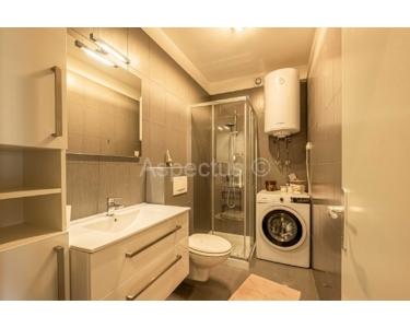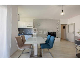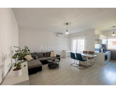 Die Wohnung besteht aus einem Eingangsflur, einer Küche mit Essbereich, einem geräumigen Wohnzimmer mit Zugang zur Loggia, zwei komfortablen Schlafzimmern, einem Badezimmer sowie einem eigenen Parkplatz vor dem Gebäude. Für Heizung und Kühlung sorgt eine Klimaanlage, und die monatlichen Nebenkosten sind äusserst günstig – ca. 200 EUR im Winter und ca. 100 EUR im Sommer.