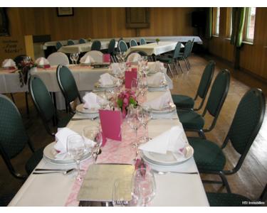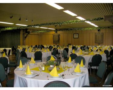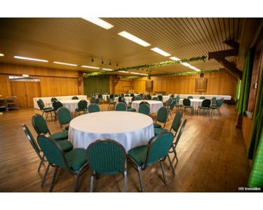Im 1. Obergeschoss befindet sich ein großer Saal mit Bühne, der durch einen Lastenaufzug aus dem Erdgeschoss beliefert werden kann.