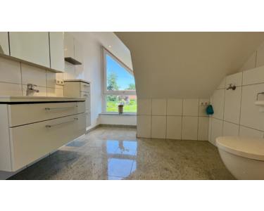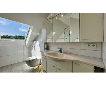 Das Obergeschoss mit ca. 125 m² Wfl. kann als eigenständige Wohneinheit genutzt werden. Es verfügt über zwei Badezimmer mit Dusche u. bietet jeweils funktionale Ausstattung bei angenehmer Tageslichtversorgung.