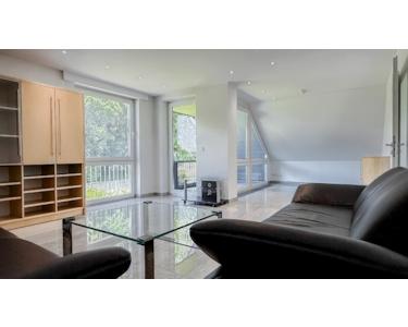 Ein zweites Schlafzimmer mit ca. 16 m² liegt zur Südseite, eignet sich ideal als Kinder-, Gäste- oder Arbeitszimmer. Ergänzt wird die Wohnung durch eine Küche mit ca. 6,5 m² sowie ein Wohnzimmer mit etwa 46 m² Wfl. und einer Loggia auf der Westseite, die einen fantastischen Ausblick bietet.