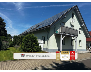 Edles Laminat in den Wohnräumen schafft eine warme, einladende Atmosphäre, während geschmackvolle Fliesen in Küche und Bad stilvolle Akzente setzen. Die untere Etage dieser charmanten Wohnung ist mit einer behaglichen Fußbodenheizung ausgestattet. Das großzügige Wohnzimmer bietet viel Platz für individuelle Gestaltungsmöglichkeiten und harmoniert perfekt mit der angrenzenden, großzügig geschnittenen Küche. Von hier aus gelangen Sie auf den großen Balkon, der zusätzlichen Freiraum zum Entspannen im Freien bietet.