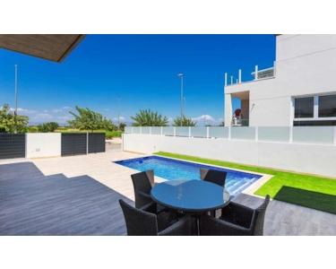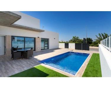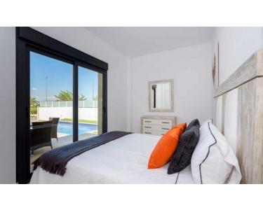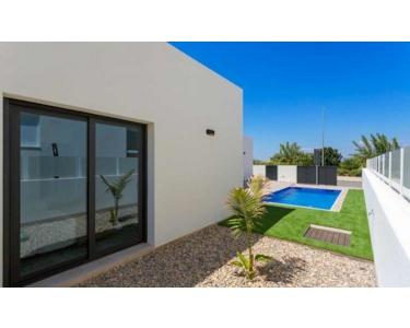 MEDITERRANE LEBENSQUALITÄT AUF EINER EBENE~~Das Dorf Daya Nueva ist die perfekte Kombination aus einem ruhigen und komfortablen Landleben und den pulsierenden Küstenorten der Costa Blanca, die nur eine kurze Autofahrt entfernt liegen.~~Diese neu gebauten Doppelhaushälften und freistehenden Villen wurden mit viel Liebe zum Detail entworfen und mit einem hohen Maß an Detailgenauigkeit gebaut. Alle Villen werden über einen eigenen Pool verfügen.~~IHR EIGENER WOHNRAUM, ALLES AUF EINER EBENE~Das Design zeichnet sich durch ein helles, frisches und modernes Konzept aus.~~Die Villen befinden sich in einem kleinen Dorf im Süden der Provinz Alicante. Der Ort heißt Daya Nueva.~~Neubau-Villen auf einer Ebene im neuen Teil von Daya Nueva. Nur wenige Gehminuten vom Dorfzentrum entfernt. Die Immobilie verfügt über 3 Schlafzimmer, 2 Badezimmer und einen 18 m2 großen privaten Pool. Wohn-/Esszimmer mit doppelter Deckenhöhe, offene Küche, Tageslicht und Option für eine Sonnenterrasse gegen Aufpreis. Das Hauptschlafzimmer verfügt über einen begehbaren Kleiderschrank und ein eigenes Bad.~~Das Haus liegt in einer neuen und ruhigen Wohngegend, etwa 10 Minuten vom Strand La Marina del Pinet und Guardamar del Segura entfernt. Gute Anbindung an die Autobahn A-70 und etwa 25 Minuten vom internationalen Flughafen Alicante entfernt.