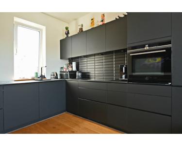 Die hochwertige offene Einbauküche, ausgestattet mit allem, was das Herz eines Hobbykochs begehrt, inklusive eines innovativen Dunstabzugs im Kochfeld, rundet das luxuriöse Wohnambiente ab.