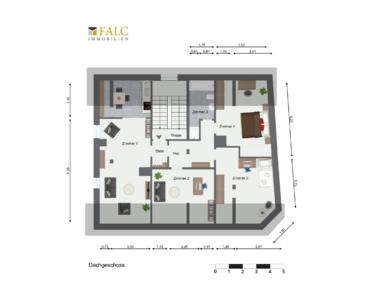 Das Dachgeschoss umfasst weitere Räumlichkeiten. Hier werden Sie von ausreichend vielen Zimmern, einer Küche sowie einem eigenen Bad mit WC auf dieser Etage empfangen.