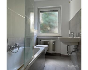 Beim Betreten der Wohnung gelangt man zunächst in den Flur, der genügend Platz für eine Garderobe bietet. Ein Wandschrank sorgt für zusätzlichen Stauraum. Von hier aus erschließen sich alle weiteren Räume. Das Tageslicht-Badezimmer ist mit einer Badewanne und einem WC ausgestattet und macht einen zeitlosen Eindruck. Die Küche ist großzügig geschnitten und so konzipiert, dass sich darin problemlos ein Frühstücks- oder Essbereich integrieren lässt.