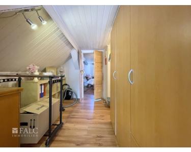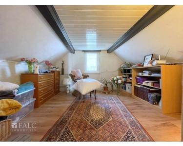Eine Treppe führt ins ausgebaute Dachgeschoss, wo sich ein weiteres Schlafzimmer befindet.