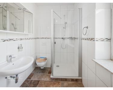 Alle Wohnungen verfügen über ein modernes Bad mit Dusche. Zu jeder Wohnung gehört ein abgeschlossener Kellerverschlag. Des Weiteren besteht die Möglichkeit, das vorhandene Dachgeschoss (3. OG) noch auszubauen. 2 Garagen befinden sich im Gebäude und sind vermietet.