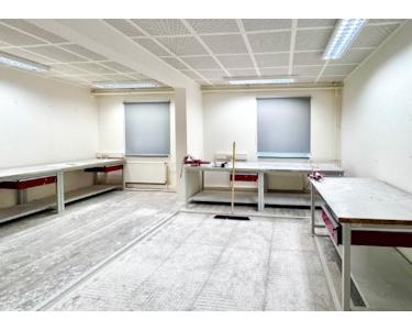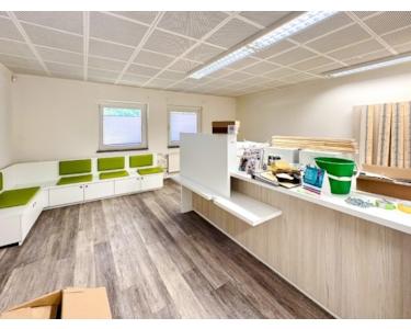 Ergänzend stehen eine Teeküche sowie sanitäre Anlagen zur Verfügung. Darüber hinaus ist eine Dusche und ein Umkleideraum vorhanden.