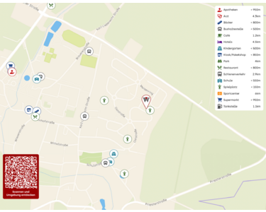 Schulen und Kindergärten sind ebenfalls gut erreichbar: Die nächstgelegene Schule liegt in nur circa 500 Metern Entfernung, ein Kindergarten befindet sich etwa einen Kilometer vom Haus entfernt. Damit sind alle wichtigen Einrichtungen des Familienalltags gut zu Fuß oder mit dem Fahrrad erreichbar.