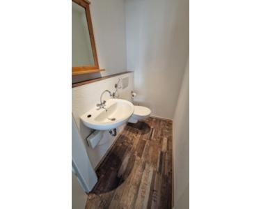 saniert, ca. 32 m², zwei Zimmer, Fenster in Dreifachverglasung, WC mit Waschbecken, zusammen mit der Wohnung im Haupthaus seit 2023 vermietet.