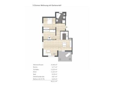 Die durchdachten Wohnungsgrundrisse sowie die komfortable und moderne Ausstattung werden Sie begeistern: In den Wohn- und Schlafräumen wird je nach Wunsch Echtholzparkett-, Fliesen-, Linoleum-, Laminat-, oder Vinylboden verlegt. Die Wohnräume, Bäder und Küchen erhalten eine Fußbodenheizung. In den Bädern sorgen zeitlose Keramik und elegante Armaturen für entspannte Wohlfühlatmosphäre. Die Duschen werden in bodenebener Ausführung erstellt. Jedes Bad erhält einen Handtuchheizkörper.