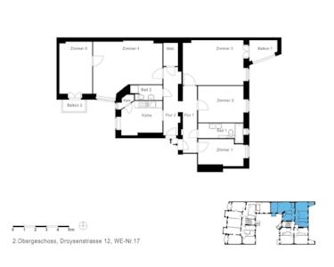 Der historische Altbau in der Droysenstraße 12, erbaut im Jahr 1910, verbindet klassischen Charme mit modernen Annehmlichkeiten. Das Foyer, geschmückt mit kunstvollen Stuckelementen, edlem Bodenbelag und Wänden aus Naturstein, schafft eine einladende Atmosphäre. Das Gemeinschaftseigentum wird aktuell umfassend aufgewertet, unter anderem durch die Erneuerung der Fassade, die Renovierung des Treppenhauses sowie Sprech- und Klingelanlagen. Der idyllische Innenhof mit Fahrradstellplätzen, Grünflächen und Sitzgelegenheiten bietet den Bewohnern und Gästen einen ruhigen Rückzugsort mitten in der Stadt.