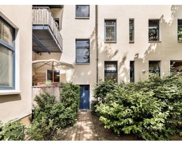 Um einen ruhigen und begrünten Innenhof erstrecken sich in dem Projekt ++Helmholtz 3++ mit dem viergeschossigen, voll unterkellerten Vorderhaus und Seitenflügel sowie der zweigeschossigen Remise zwei gepflegte Altbauten aus der Jahrhundertwende. Der beeindruckende Eingangsbereich des Hauptgebäudes empfängt die Bewohner mit klassischen Stuckelementen, Terrazzoboden und originalen Holztüren. Auf das in Massivbauweise errichtete und mit Holzfenstern ausgestattete Mehrfamilienhaus verteilen sich insgesamt acht zum Teil zusammengelegte, vermietete Einheiten mit ca. 66 m² bis ca. 140 m² Wohnfläche. Die gepflegten 2- bis 4-Zimmer-Wohnungen verfügen alle über Tageslichtbäder und Terrassen oder Balkone. Das bezugsfreie, renovierte 1-Zimmer-Apartment in der mit Klinkersteinen verkleideten Remise ergänzt das Angebot. Es stehen zusätzlich 17 PKW-Garagen zum Verkauf.