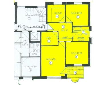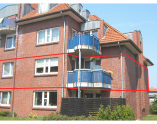 Diele, Wohnzimmer, Balkon, Küche, gr. Abstellraum, Wannen-Bad/WC, 2 geräumige Schlafzimmer. Wohnfläche ca. 82,20 m². Trockenboden im Haus, Gemeinschafts- Fahrradraum, Kfz-Stellplatz.