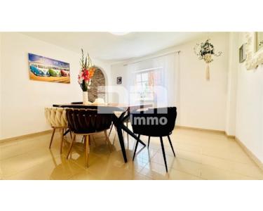 Linker Hand gelangen Sie in das modern geflieste große Wohnzimmer, an das sich mit offenem Durchgang das wohlgeschnittene Esszimmer schließt.