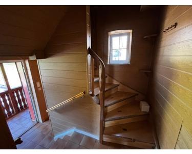 Das Obergeschoss begeistert mit einem offenen Wohnbereich und sichtbarem Gebälk, das eine