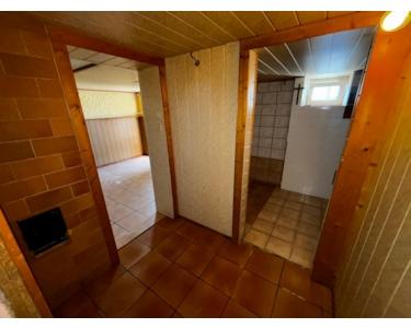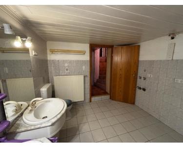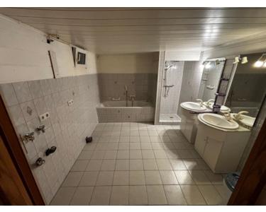 Badezimmer mit Wanne und Dusche, Waschmaschinenanschlüssen und doppeltem Waschbecken, Nische mit Stromzählerschrank, 1 Kellerraum und ein Partyraum mit Zugang ins Freie