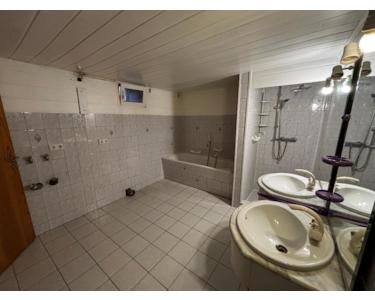 Im Untergeschoss erwartet Sie ein großzügiges Badezimmer mit Wanne, Dusche, doppeltem