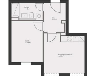 Das Herzstück der Wohnung ist der offene Wohn- und Essbereich, der durch bodentiefe Fenster mit Licht durchflutet wird. Das Schlafzimmer bietet ausreichend Platz für Ruhe und Rückzug. Das Badezimmer überzeugt mit einer großformatigen, bodengleichen Dusche und modernem Design.