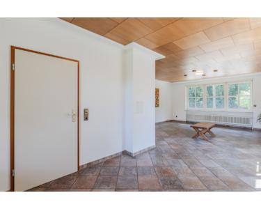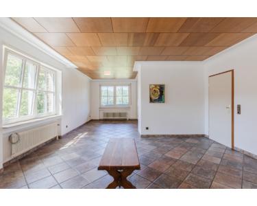 Einzigartige Lage, am Rande eines weitläufigen Waldgebiets und in einer ruhigen Sackgasse, die in einen idyllischen Waldweg übergeht, steht dieses beeindruckende freistehende Einfamilienhaus.