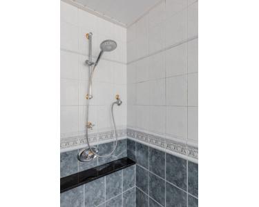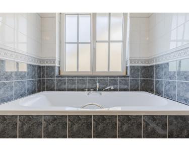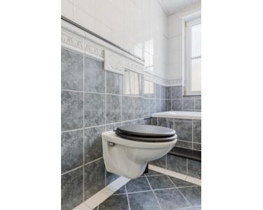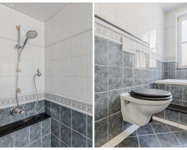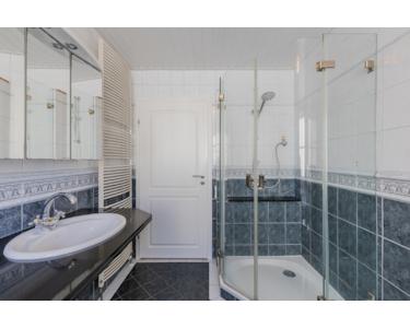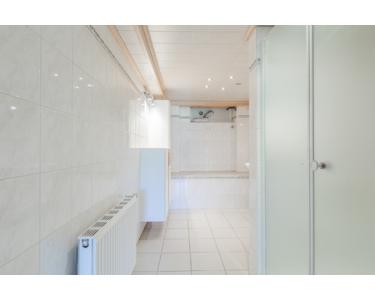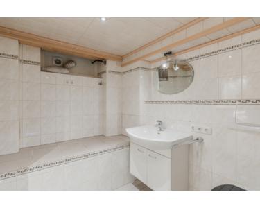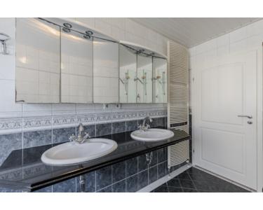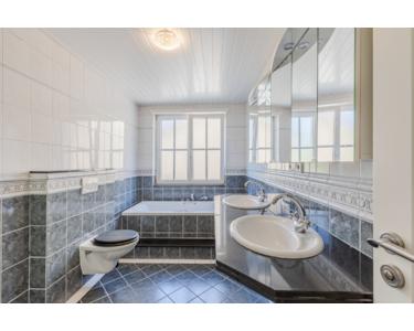 Badezimmer mit Badewanne, Dusche, WC und Doppelwaschtsich