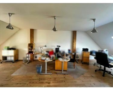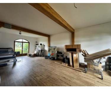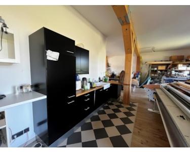 Die Ausstattung umfasst zwei Einbauküchen, die ideal für die Bedürfnisse eines modernen Gewerbebetriebs ist. Zuletzt wurde die Scheune für die Erstellung von Werbefolien genutzt. Ein zusätzlicher Abstellraum bietet ausreichend Platz für Lagerungen und die moderne Erdwärmepumpe.