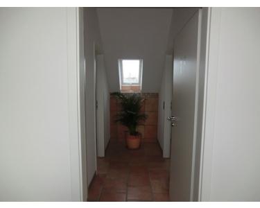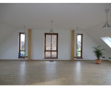 Der Fußboden ist mit pflegeleichtem, aber hochwertigem Laminat ausgelegt, und die Fenster bestehen aus langlebigem Kunststoff mit Funktionsglas. Im Erdgeschoss bestehen die Fensterrahmen aus Holz, die mit etwas Liebe wieder in neuem Glanz strahlen werden. Außerdem verfügt das Objekt über 19 hochwertige VELUX Dachfenster aus Kunststoff mit elektronischen Dachfensterrollläden.