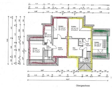Wohnzimmer, Schlafzimmer, Küche, Dusche / WC, Aufgang in den ausgebauten Spitzboden.