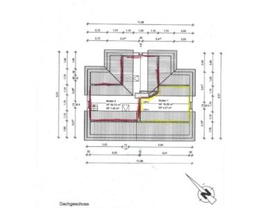 Dachgeschoss: Flur mit Treppenaufgang zum Spitzboden, WC, 2 Schlafzimmer.
