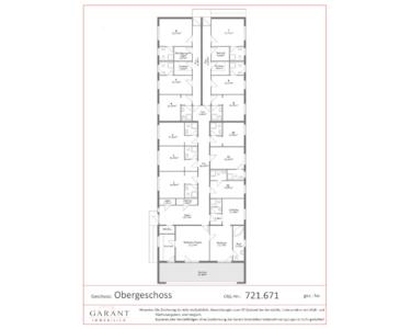 Ein Flur trennt auf einer Fläche von ca. 314 qm die anschließenden 13 Appartements, eingerichtet wie im EG mit Bad und Küchenmodul.