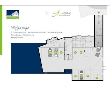 Parken Sie Ihr Auto oder Fahrrad bequem in der Tiefgarage und gelangen Sie mit dem Fahrstuhl komfortabel und trocken in Ihre Wohnung.