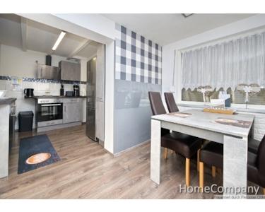 Die geräumige Wohnung ist aufgeteilt in ein Wohnzimmer, ausgestattet mit einem gemütlichen Sofa (auch als Schlafsofa nutzbar) einem Smart-TV und einem Schreibtisch. Das Schlafzimmer ist mit einem Doppelbett und einem geräumigen Kleiderschrank möbliert. Auch im Schlafzimmer steht Ihnen ein Smart-TV zur Verfügung. Die Küche ist ausgestattet mit Spülmaschine, Kochzone, Backofen, einer großen Kühlgefrierkombination sowie Geschirr und Kochutensilien. Der Esstisch für 4 Personen ist zwei Schritte entfernt. Das Tageslichtbad ist mit einer Dusche eingerichtet. Im geschützten Außenbereich steht Ihnen eine Sitzmöglichkeit zur Verfügung. Waschmaschine und Trockner befinden sich in einem Anbau direkt neben dem Hauseingang.